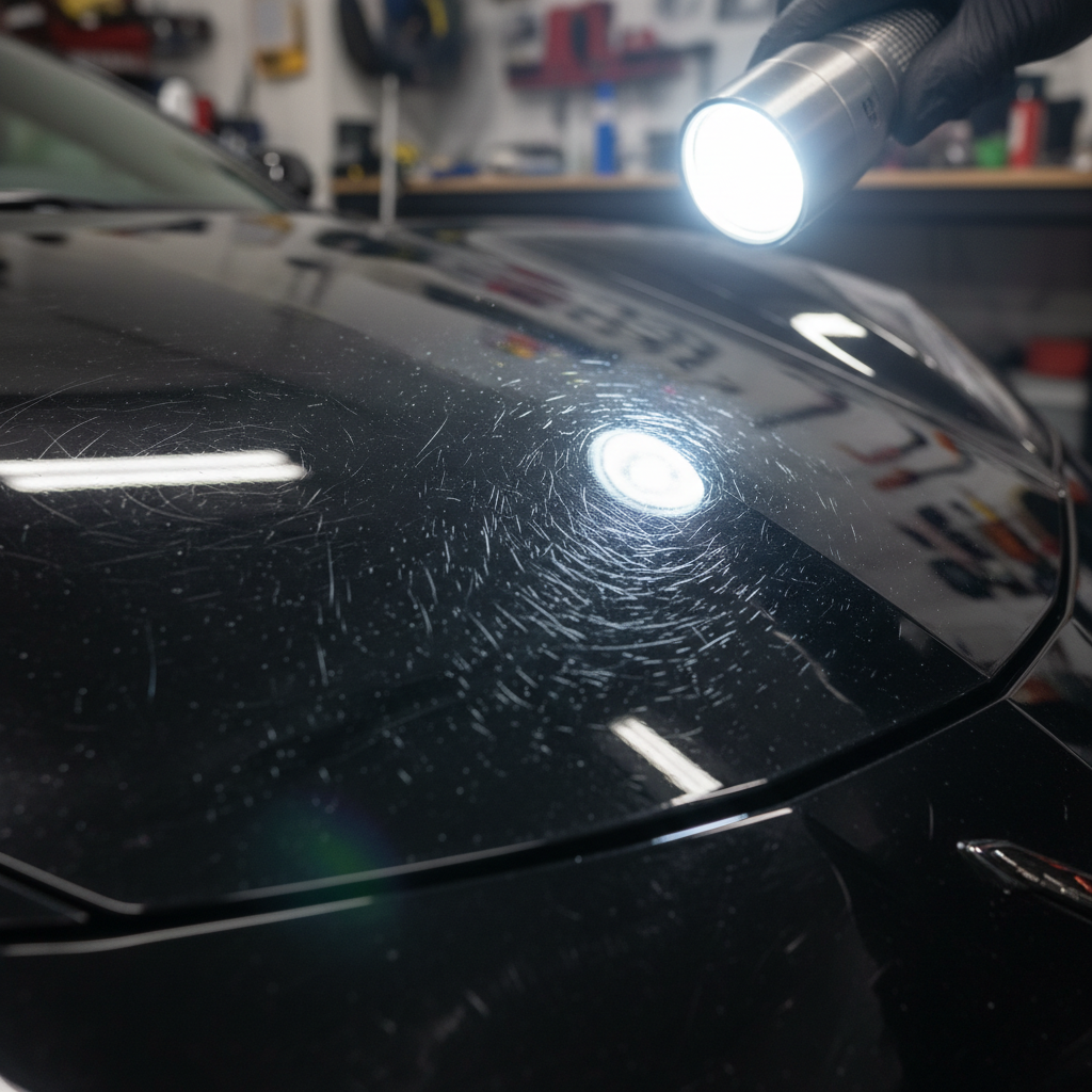 "They pulled 3.2 microns of swirl out of my Z06 tri-coat and got it down to 0.1. Judging lights at Cars & Coffee showed zero hologramming. First time I've been able to trailer with confidence."